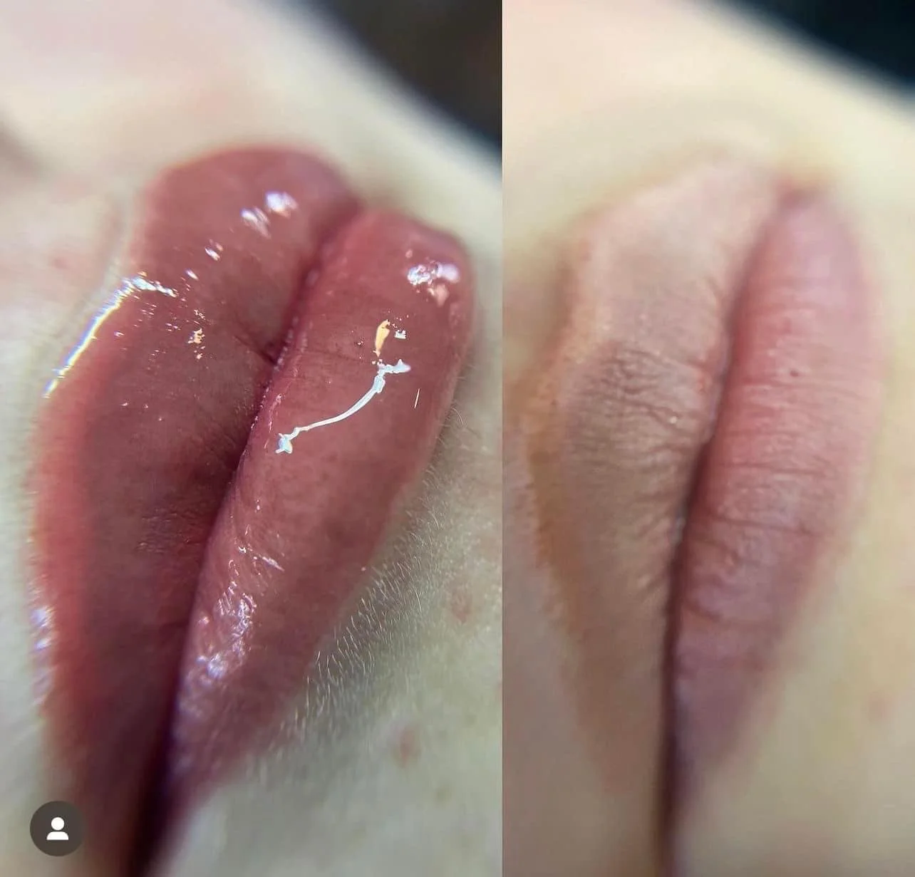 After the procedure, the lips may appear swollen and the color more intense. Over the next few days, the color will fade to its final shade as the lips heal.